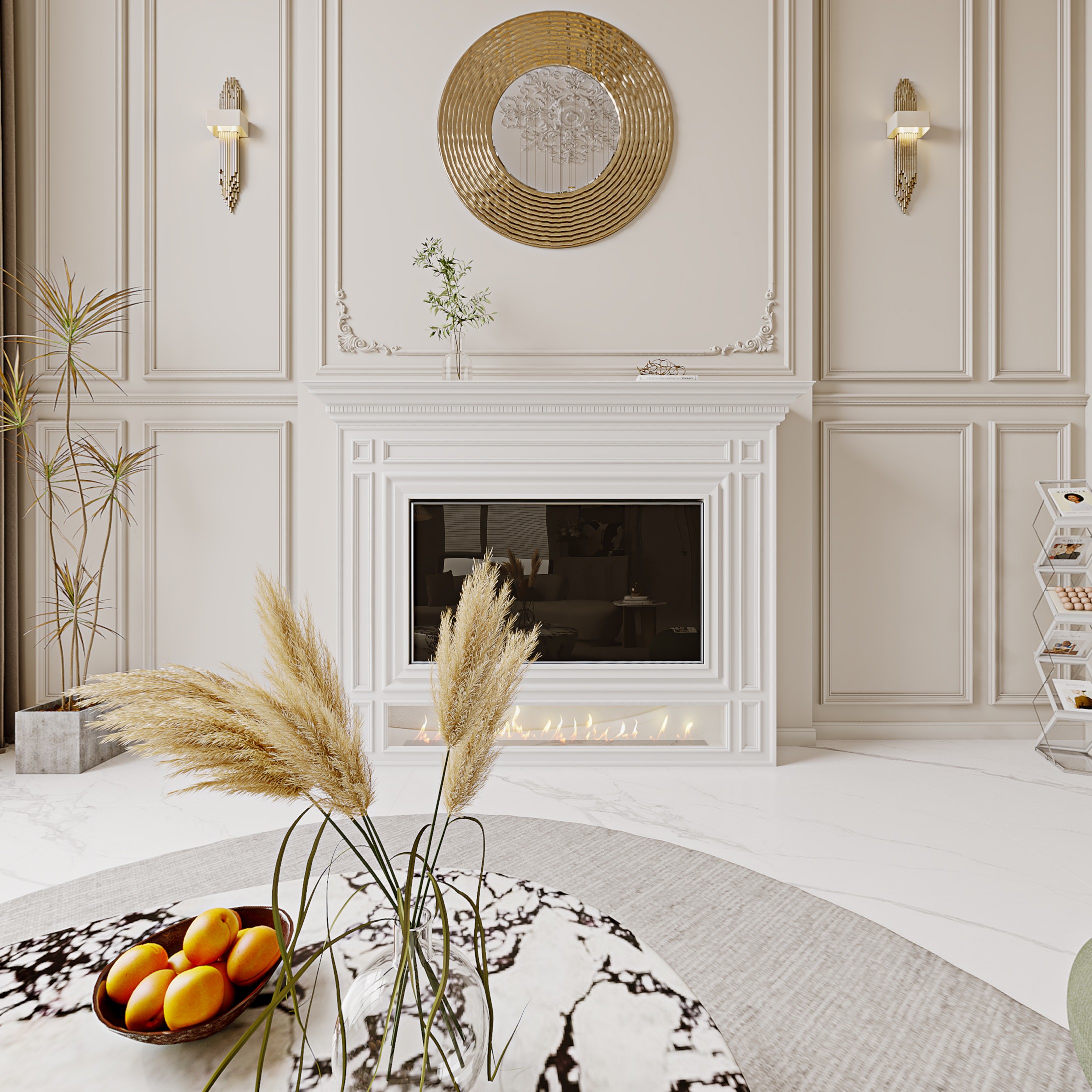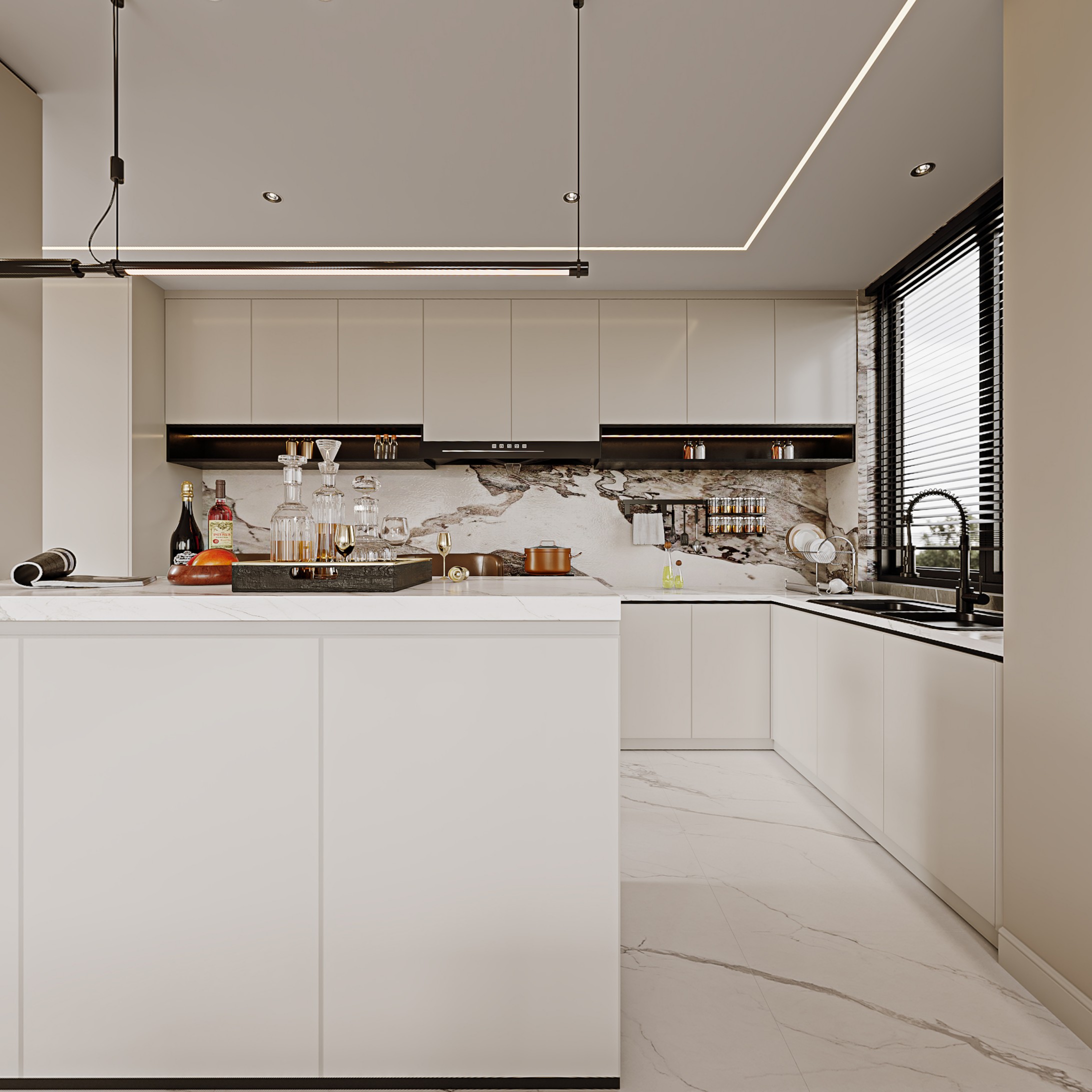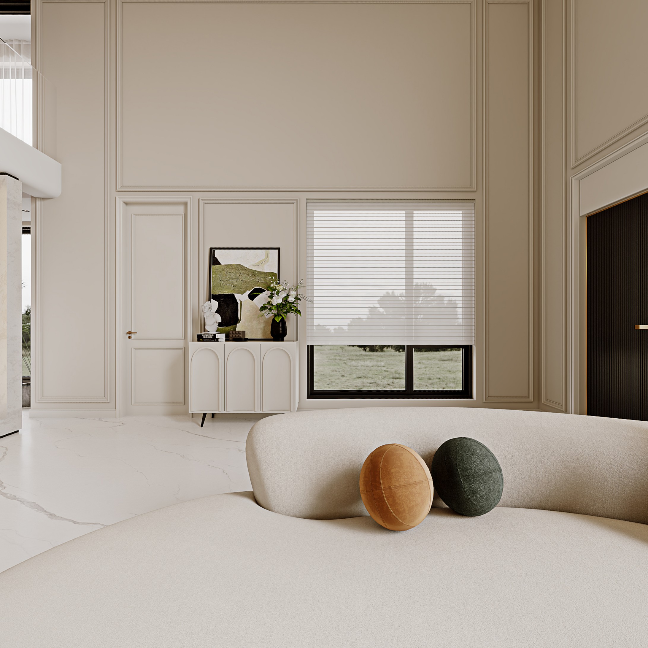 客厅以大面积纯白作为主色调进行铺陈,明亮而纯粹的色彩让空间大气之余又优雅十足,烘托出了一个意蕴生动的艺术空间氛围。现代沙发将舒适度拉满,柔和的弧度搭配金属独有的肌理,既统一了空间的整体调性,将空间的质感拉满,又以细腻入微的美学来营造沉浸式体验的居家环境,如一抹动人的点睛之笔,将静谧与梦幻结合的恰到好处。