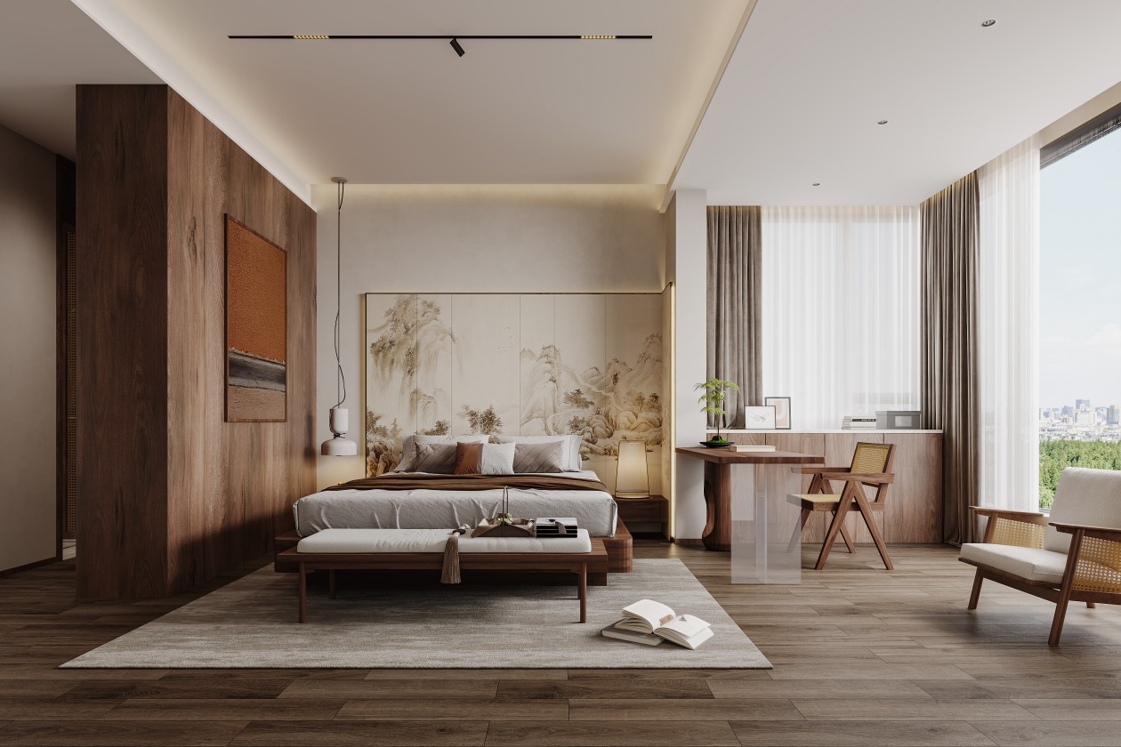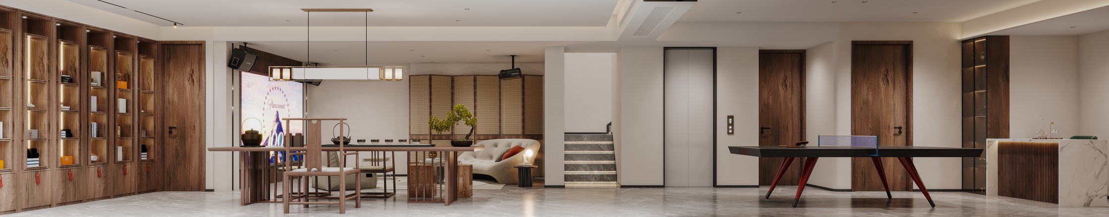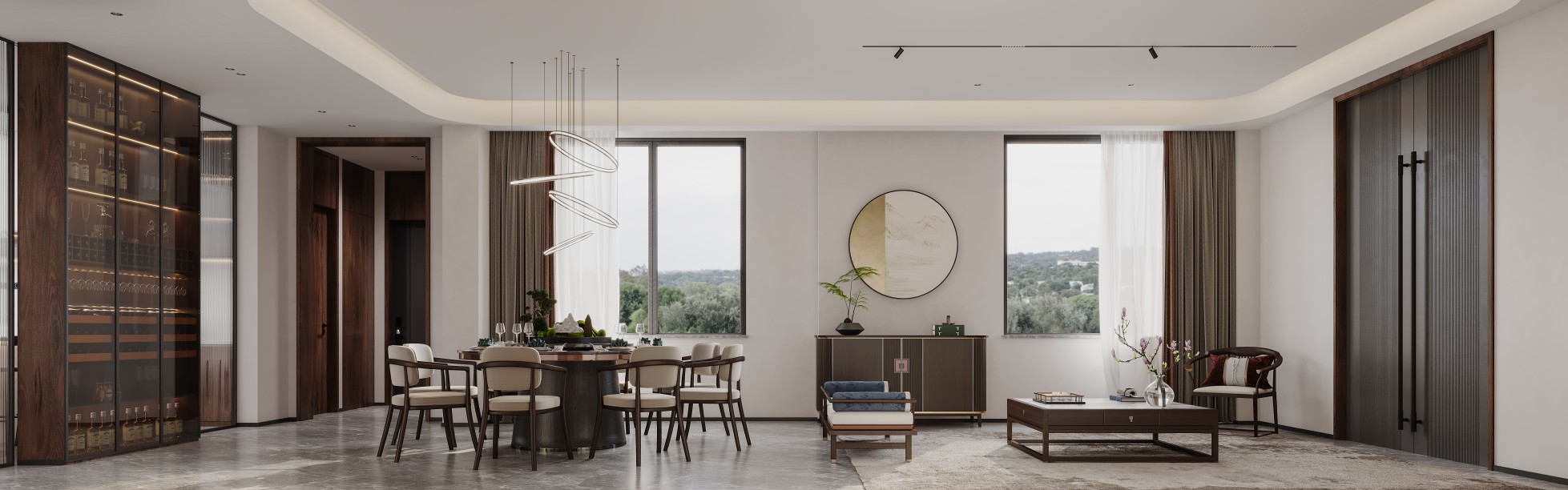 本案位于瑞安翠湖山小区 联排边户别墅,以 “人文雅韵・当代栖居” 为核心定位,针对女业主大学老师的知性审美与男业主退休公务员的沉稳需求,将现代新中式风格的 “形简意丰” 与家庭生活场景深度契合。整体空间摒弃传统中式的繁复复刻,通过传统文化元素的当代转译、现代材料与传统工艺的碰撞融合,打造兼具文化底蕴、实用功能与时代审美的理想居所。