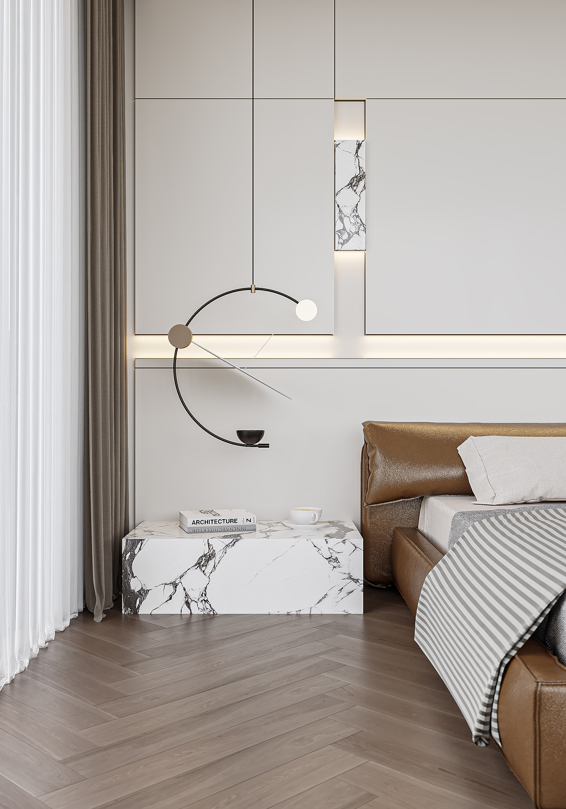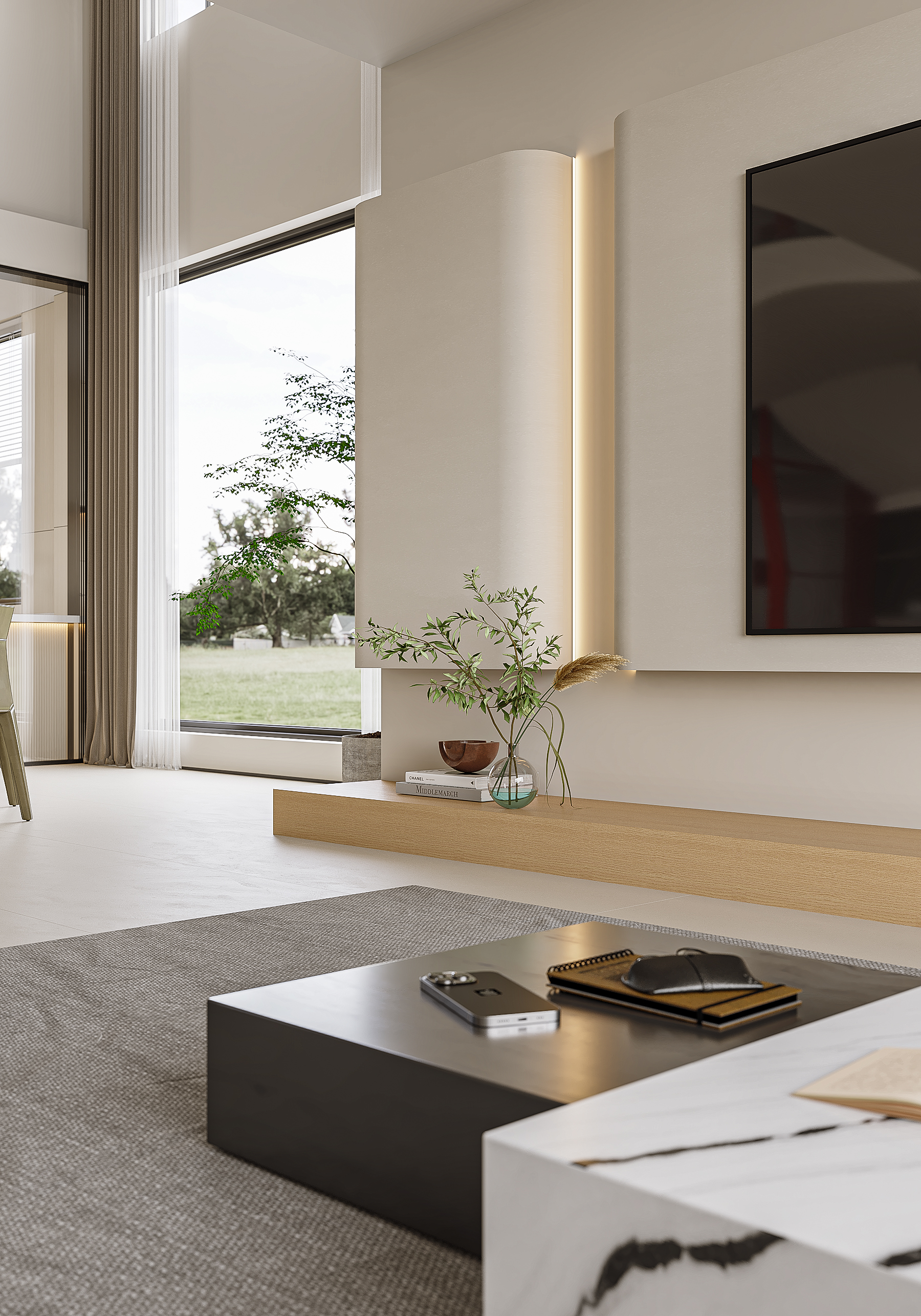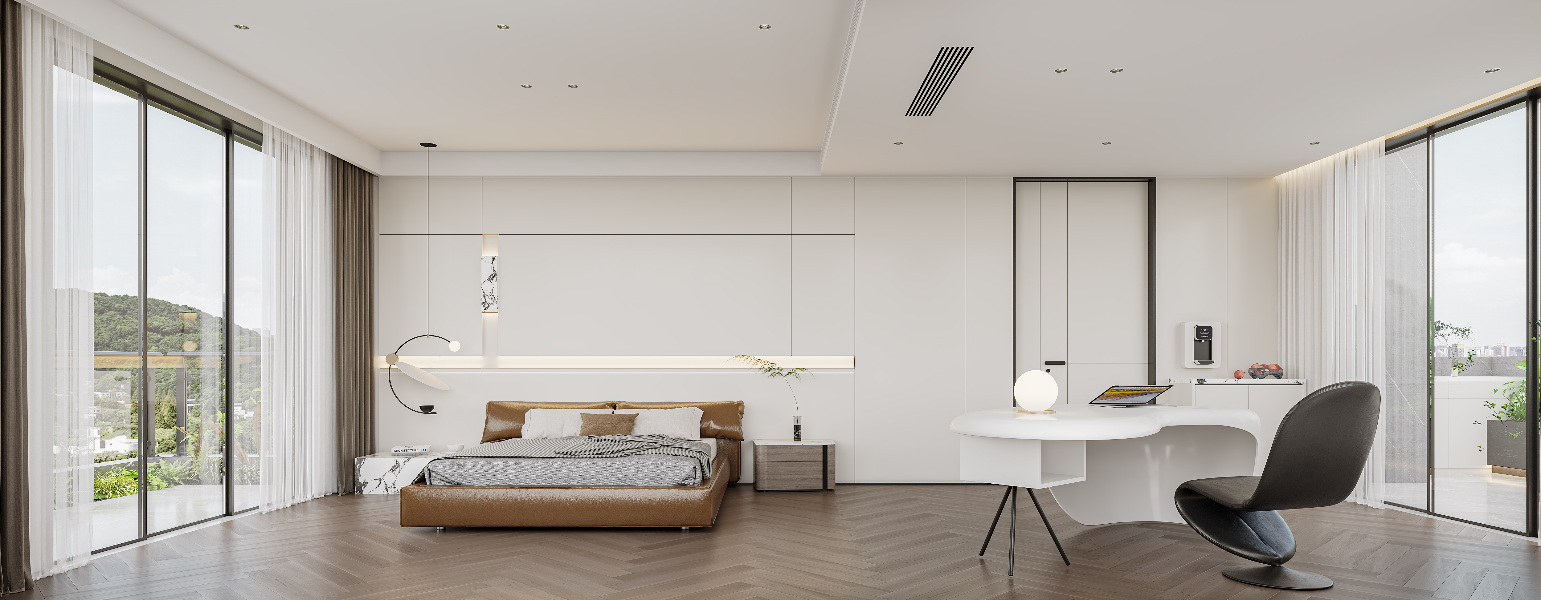 在设计上以拓展空间视野和连通互动为宗旨,强化空间的功能使用的舒适和便捷,整体以简约为主线加上原木材质的使用,让空间简洁不失温暖体现家的治愈和惬意。