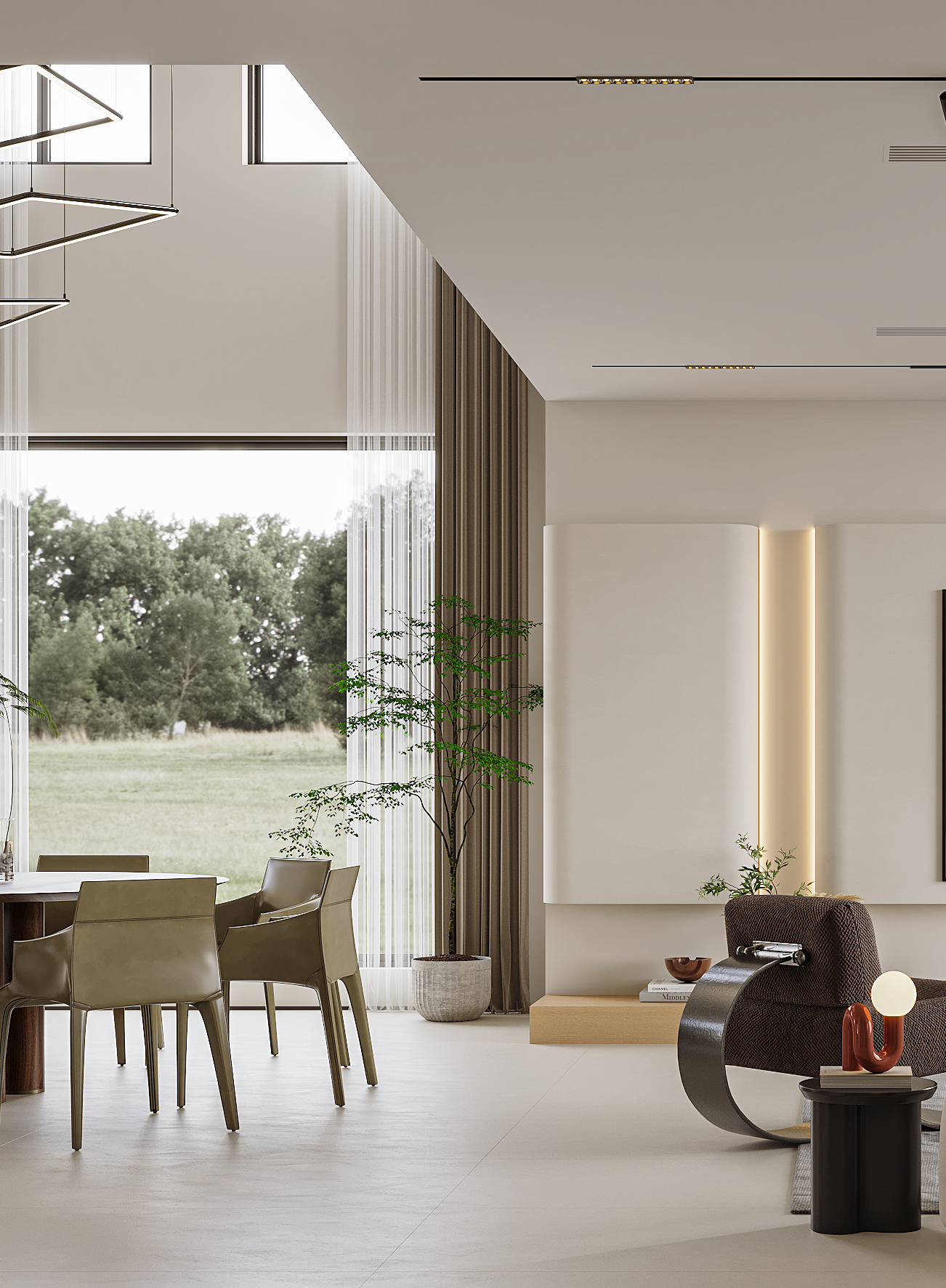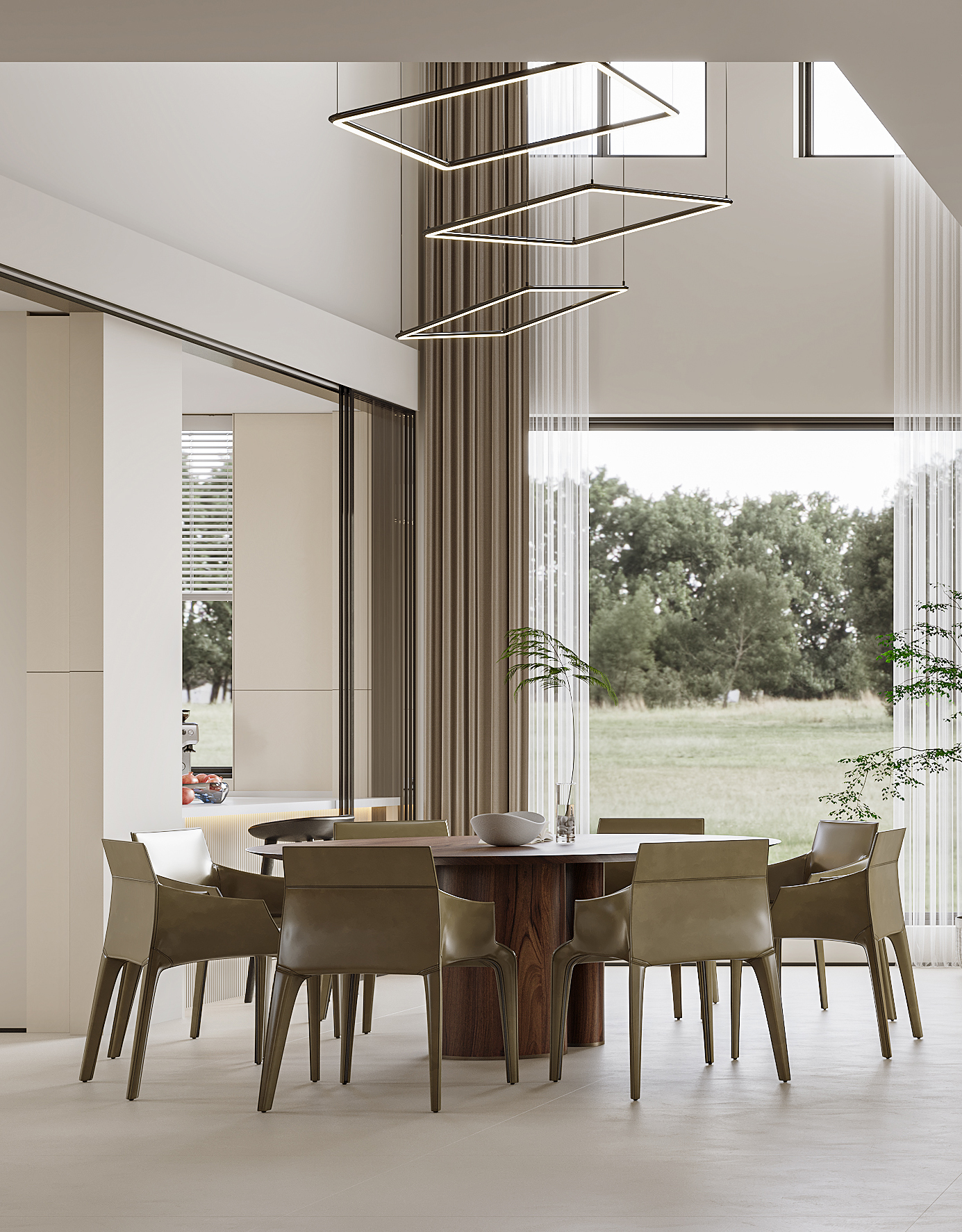 室内转换大采光运用使得院落与室内更加交互,空间中多维度的转换使得空间的通透性和空间体量得到释放。
