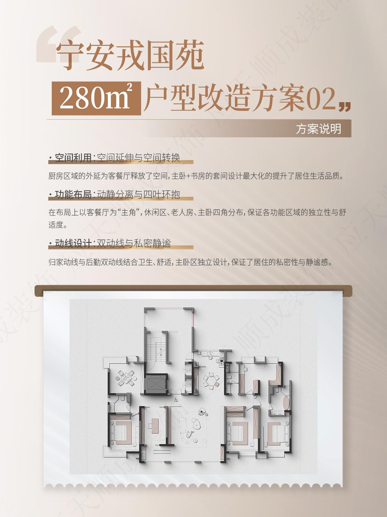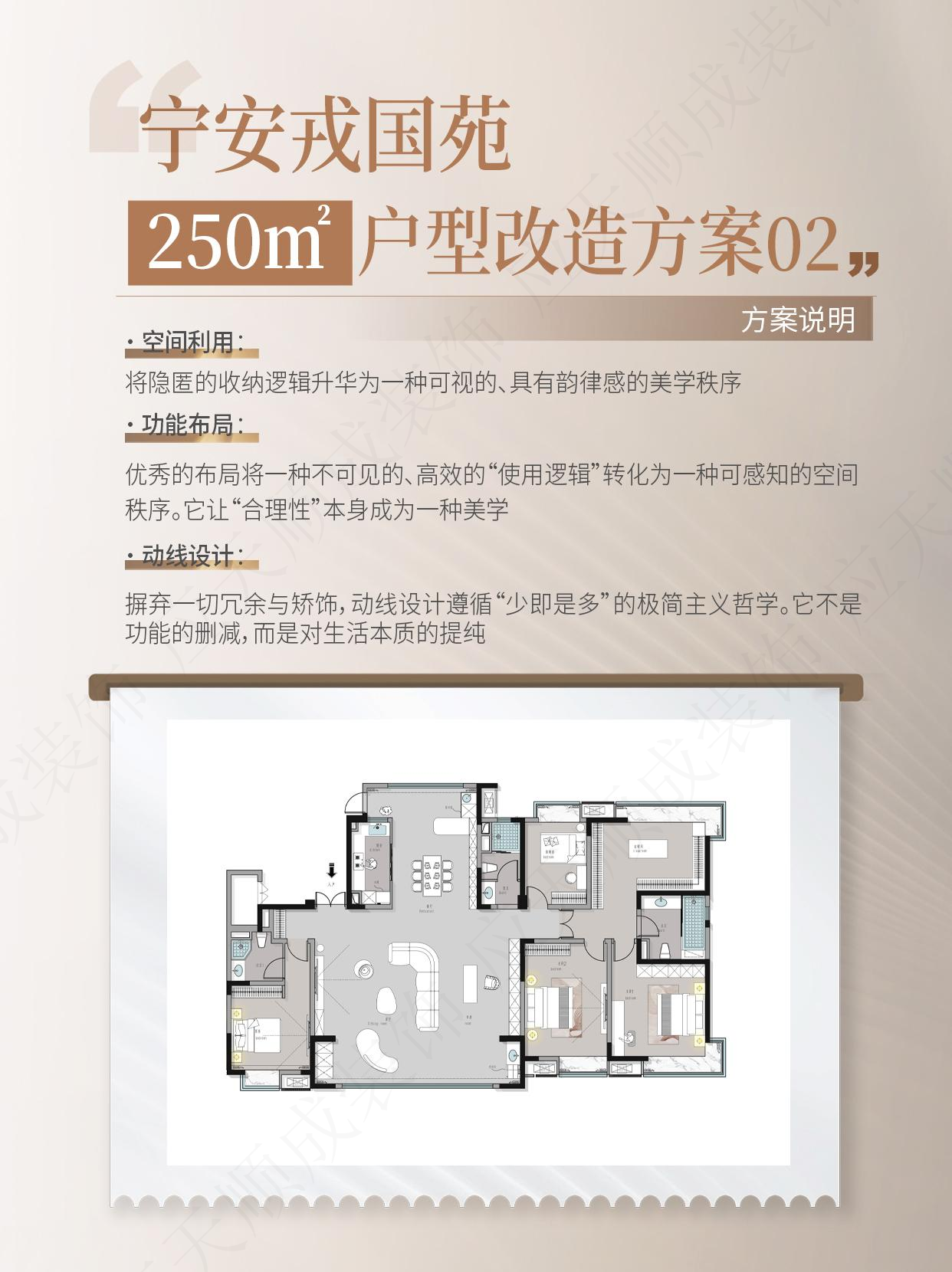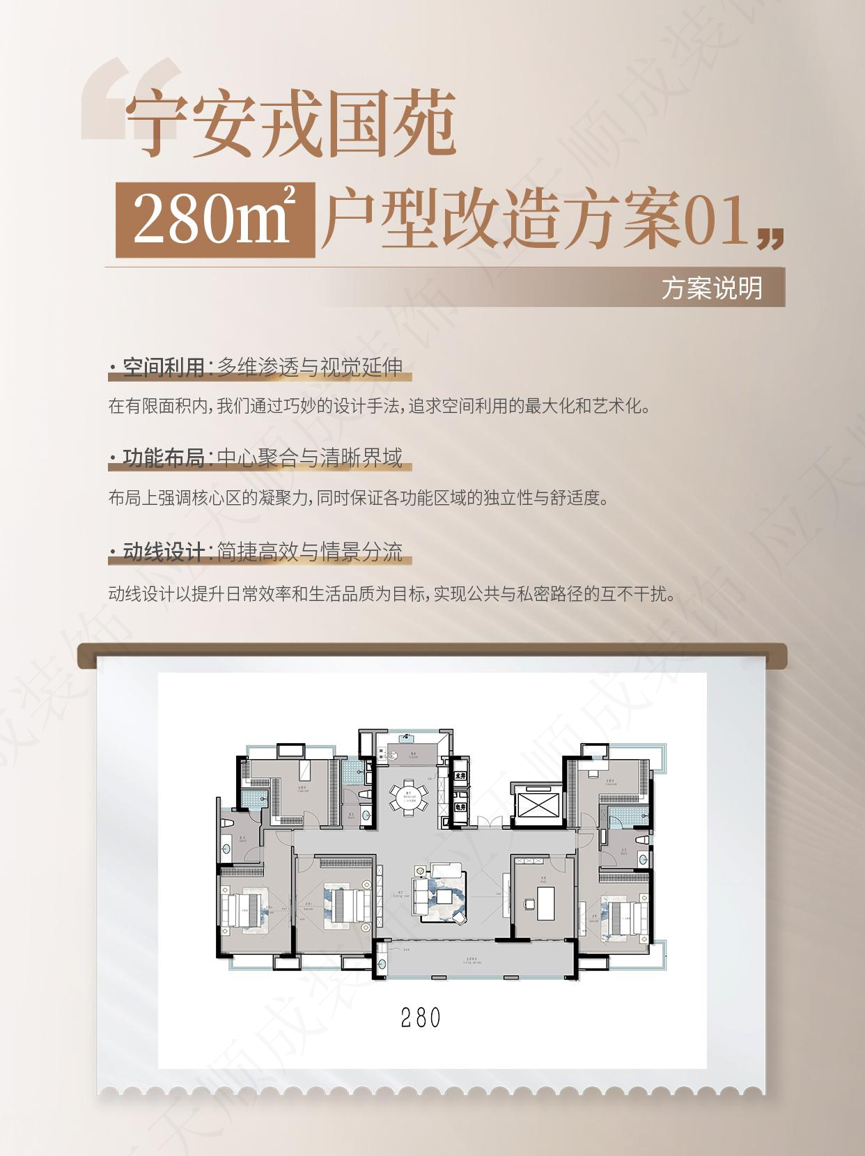 针对200㎡、250㎡、280㎡、300㎡四款户型,我们完成了系统性改造方案。通过优化空间动线、重构功能布局,实现动线更流畅、功能更合理、居住体验全面升级。以下为户型节选改造方案,欢迎预约1对1解读。